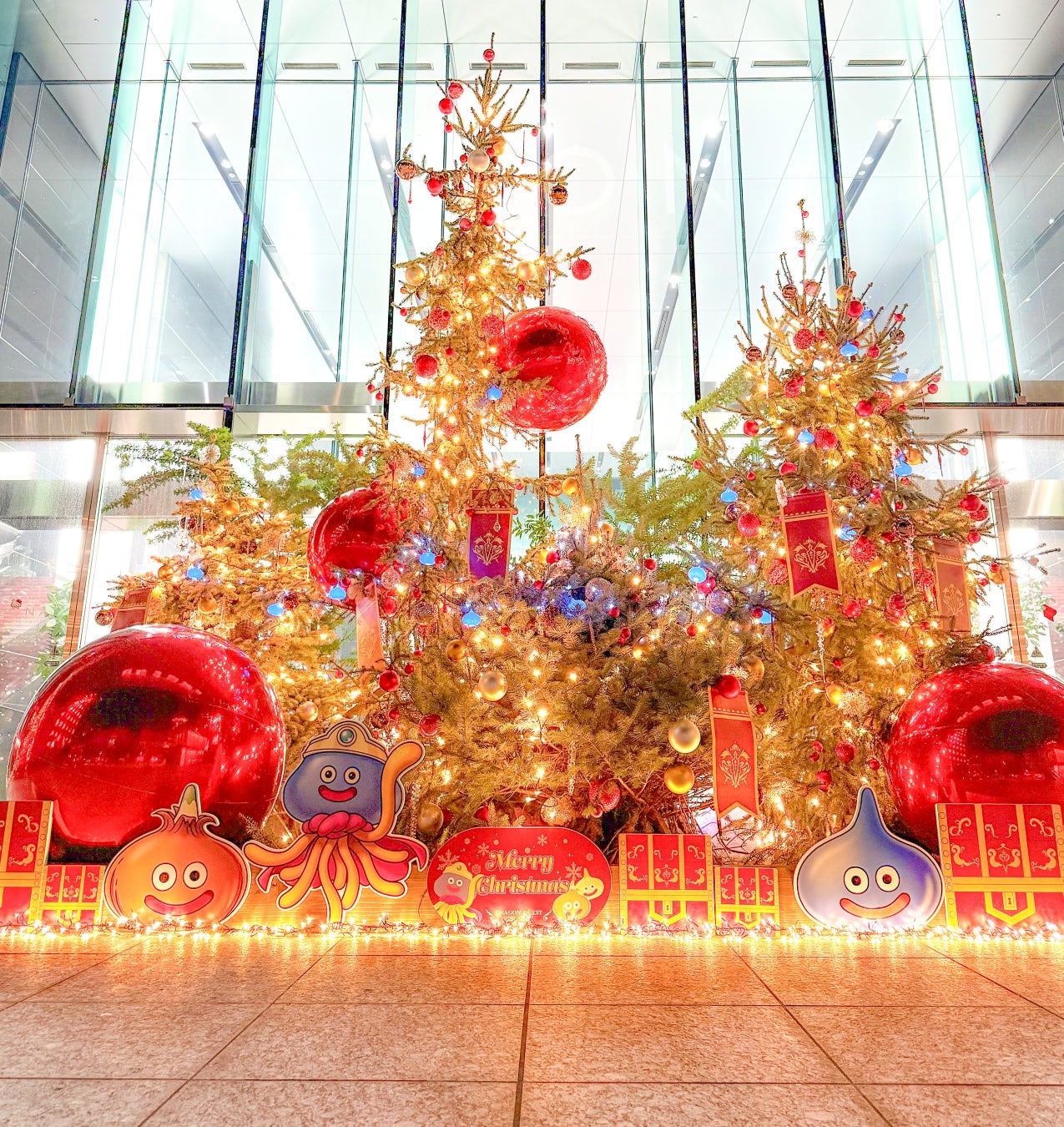 高さ3.6mのツリーにスライムのLEDライトなどが装飾された「ドラゴンクエスト アイランド オリジナルクリスマスツリー」とモンスターパネルをPASONA SQUARE 広場に設置。毎日17時〜21時にて点灯いたします。
