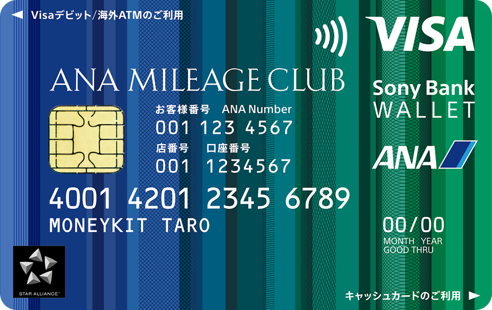 ANA マイレージクラブ / Sony Bank WALLET は、国内のVisa 加盟店でのショッピングや外貨預金、投資信託などの銀行取引でもマイルを貯めることのできる年会費無料のマルチカレンシーデビットカードです。