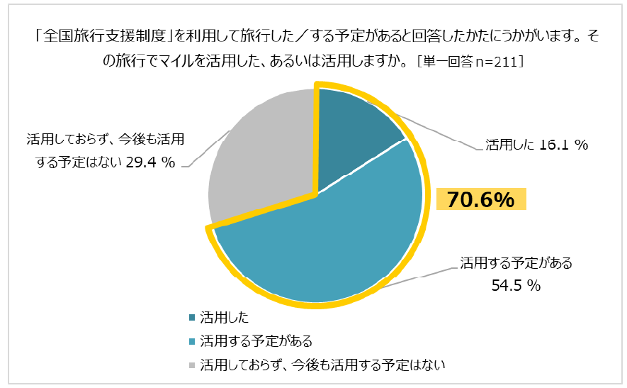 「全国旅行支援」実施中の今、旅行でマイルを積極的に活用したいという人が70%も!