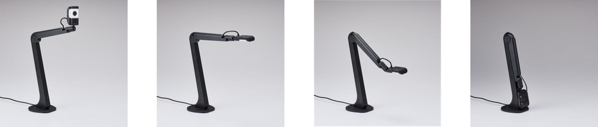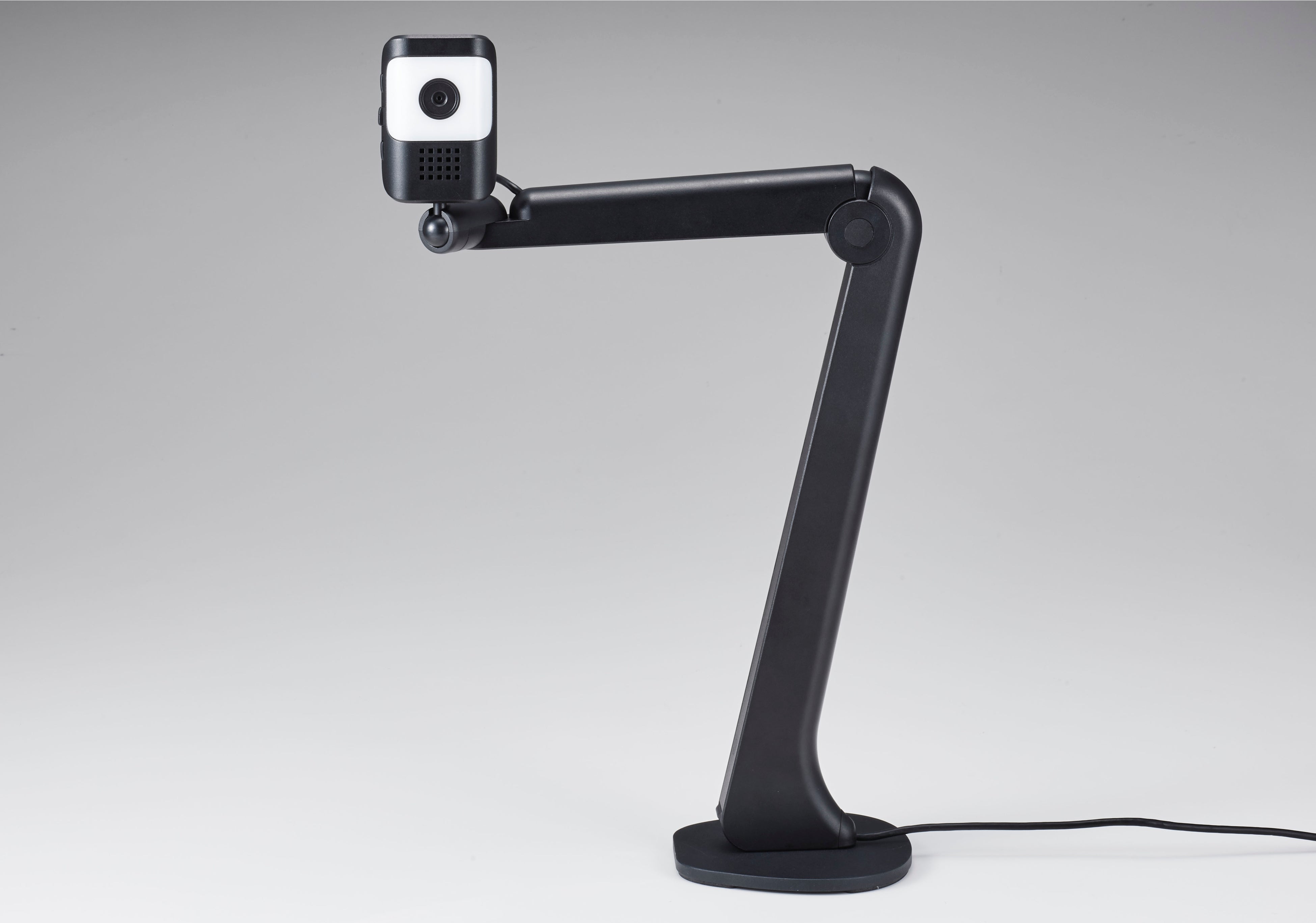 上下に動くアームと360度回転するカメラヘッドで自由自在にアングル調整ができ、手元や顔を好きな画角で映すことができます。使わないときはアームを折り畳みコンパクトに収納できます。