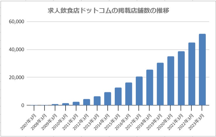 株式会社シンクロ・フード(本社:東京都渋谷区、代表取締役:藤代真一、東証プライム市場:3963)が運営する飲食店専門の求人サイト「求人飲食店ドットコム」において、2023年3月に掲載店舗数(※1)が5万件を突破しました。