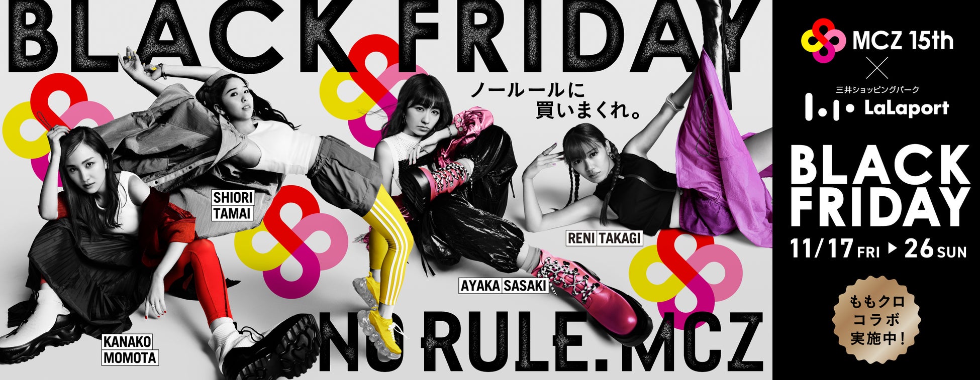 ららぽーとBLACK FRIDAY 開催!ももいろクローバーZ結成15周年記念プロジェクト「NO RULE PARTNERSHIP」とのスペシャルコラボ施策も