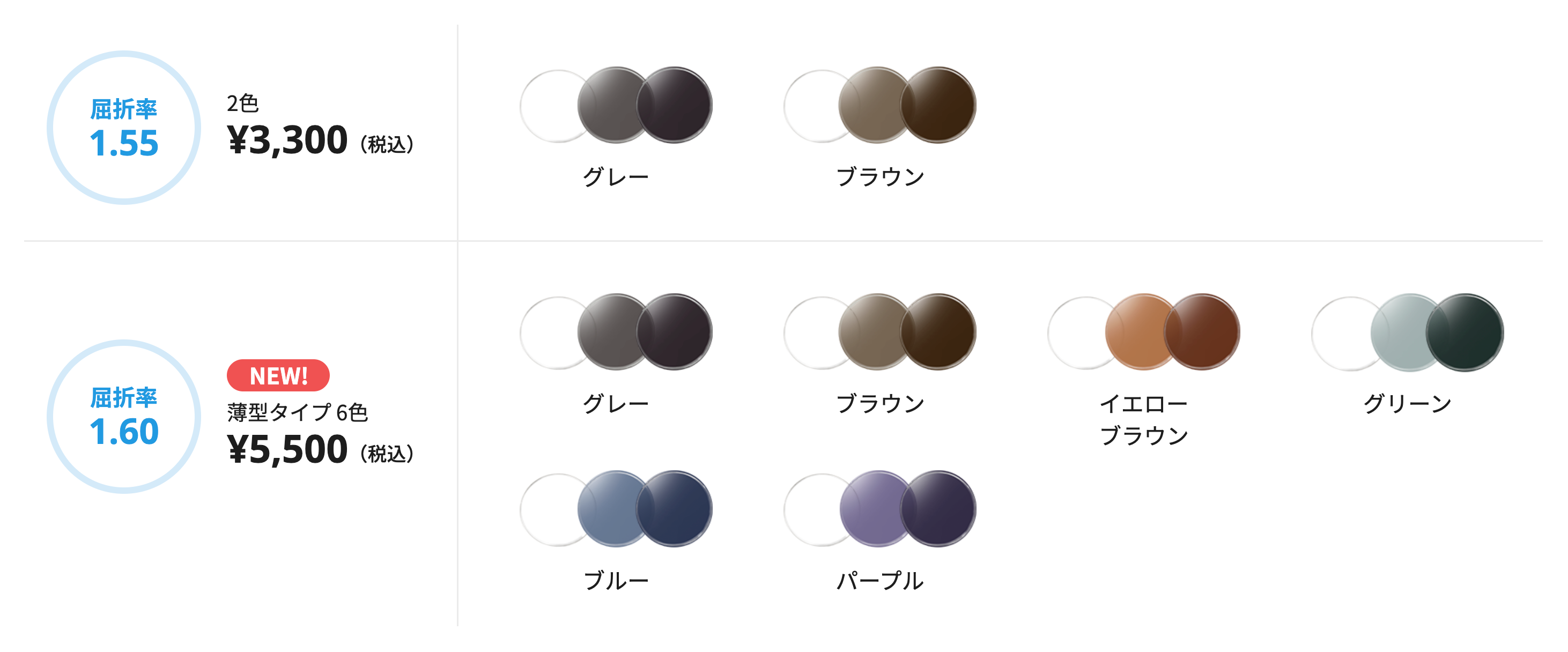 調光レンズ 追加料金 +3,300円(税込)~全8色