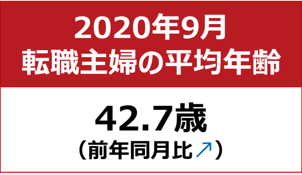 【転職主婦の平均年齢調査 2020年9月】42.7歳(前年同月比+0.7歳)