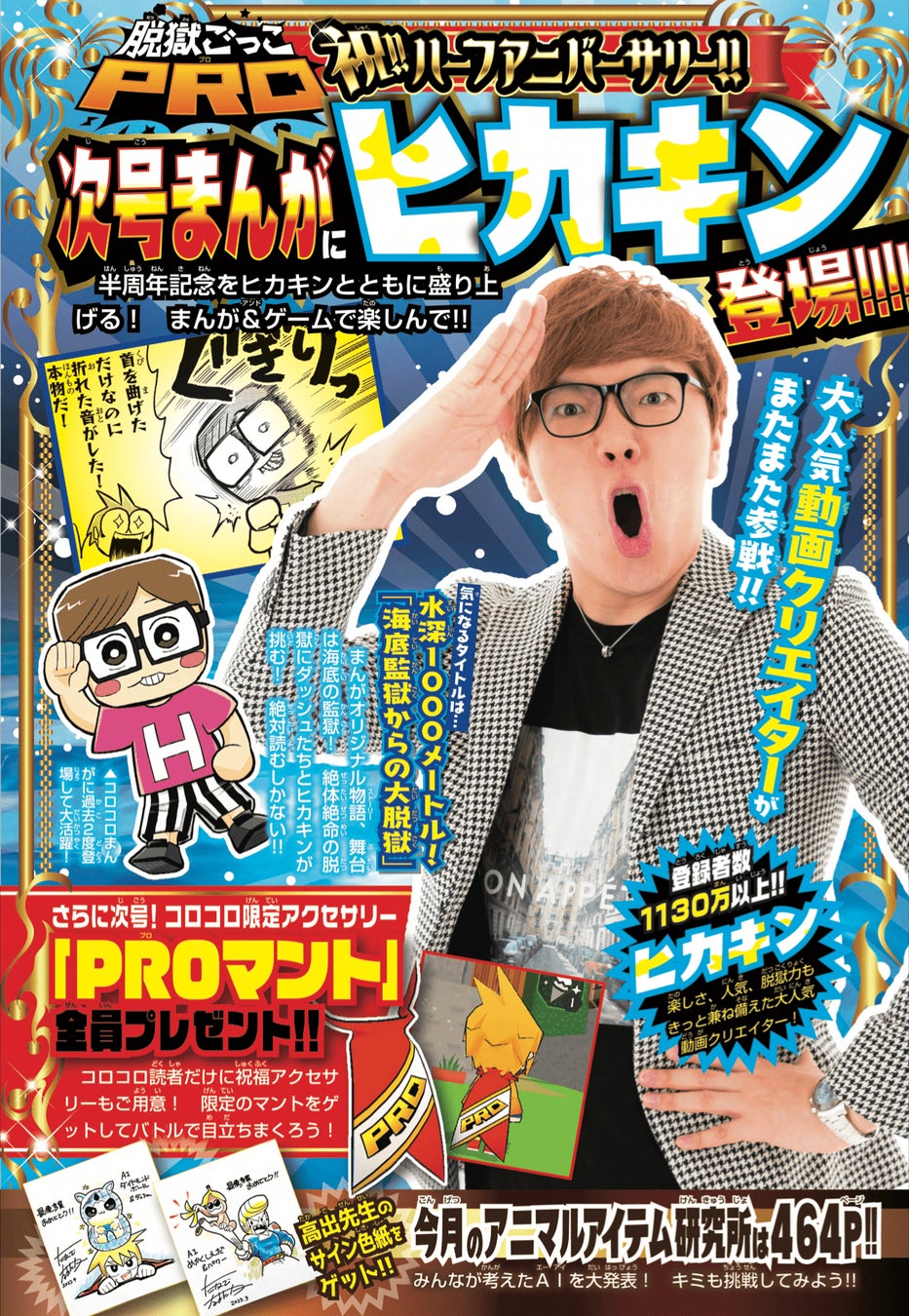 7月号に続きヒカキンが登場する8月号では、ゲーム『脱獄ごっこPRO』で使用できるゲーム内アクセサリー「PROマント」のプレゼントキャンペーンも実施します!