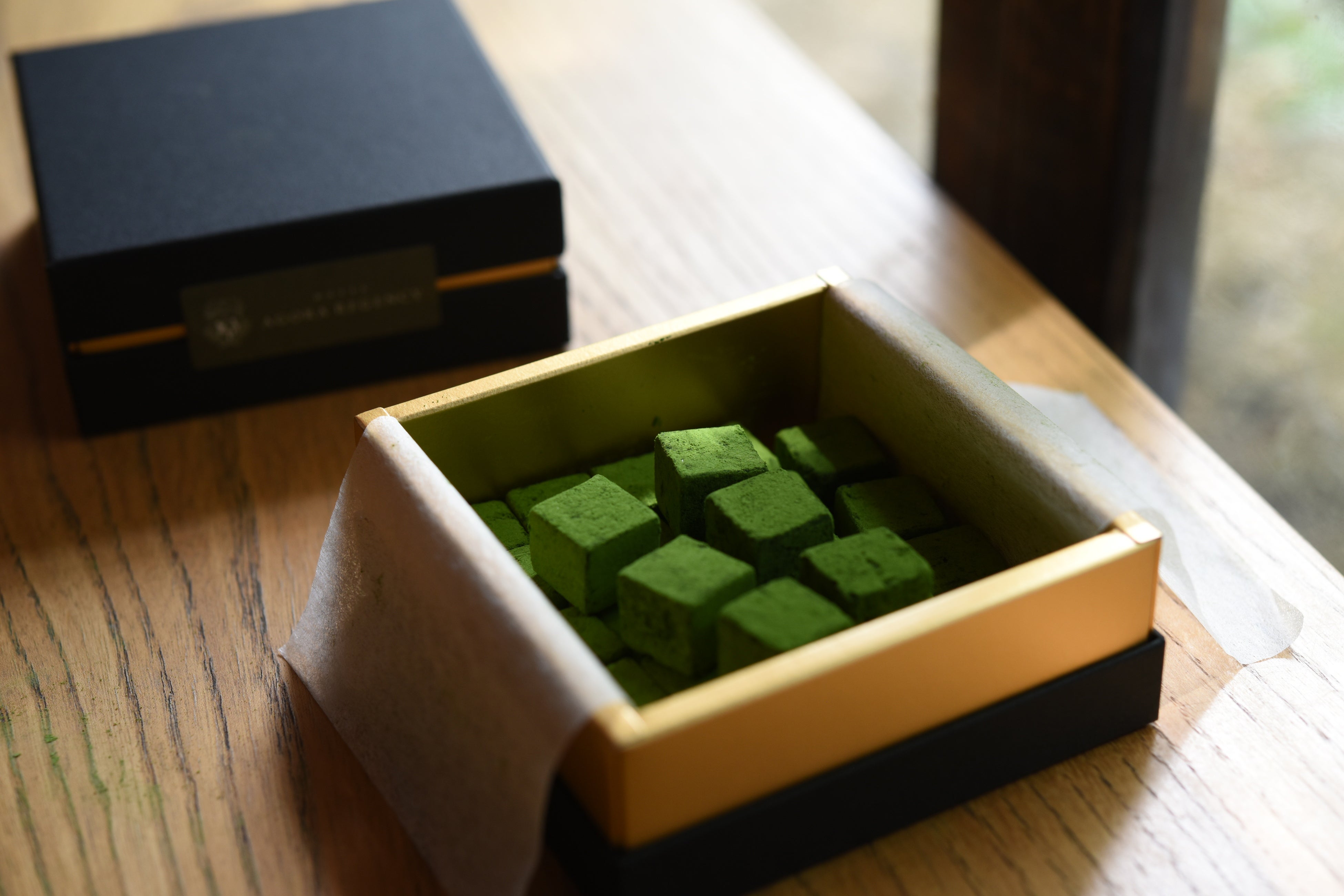 前回宿泊プランのみで提供していた「つぼ市製茶本舗」の「一番摘みの宇治抹茶生ショコラ」が、お客様のご要望も多く店頭でもお買い求めいただけるようになりました。茶道千家の始祖 千利休ゆかりの地でもある堺で、創業170年以上続く老舗茶舗の厳選された抹茶をふんだんに使用し、ホテルパティシエが丁寧に仕上げた生チョコレートです。