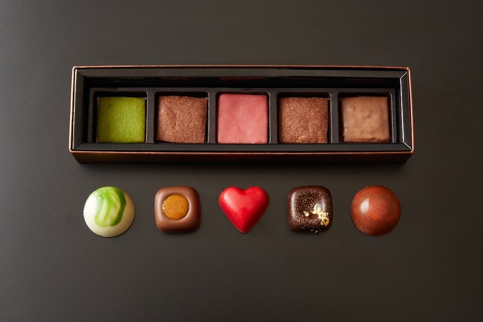 バレンタインシーズン限定で販売される「シュプリーズ -Surprise-」は、その名の通り、特別なバレンタインに新たな「驚き」を添える1箱です。カカオの深い味わいと5つの個性豊かなフレーバーが調和し、香り豊かな大人の甘さが口いっぱいに広がります。チョコレートの下には、各種類のチョコレートにぴったりのフレーバーのクッキーが、サプライズとして隠されており、チョコレートの優しい口溶けとバターの風味が効いたサクサクのクッキーの食感をお楽しみいただけます。さらに、華やかな甘みをサンドしたマカロンや、創業170年の老舗「つぼ市製茶本舗」の厳選された抹茶を使用した濃厚な生ショコラなど、ホテルパティシエが作るこだわりのバレンタインギフトを取り揃えています。
