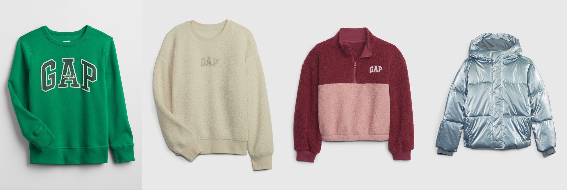 今年のブラックフライデースペシャルプライス商品は、Gap1969やメタリックなGAPロゴが施されたカラフルなスウェットアイテムや、シンプルでどんなコーディネートにも合うセーター、ファミリーでお揃いにもできる着心地抜群なボアアイテムなどが並びます。幅広い世代から人気のGAPロゴや、軽量で保温性に優れたPRIMALOFT®パファーのアウターは必見です。