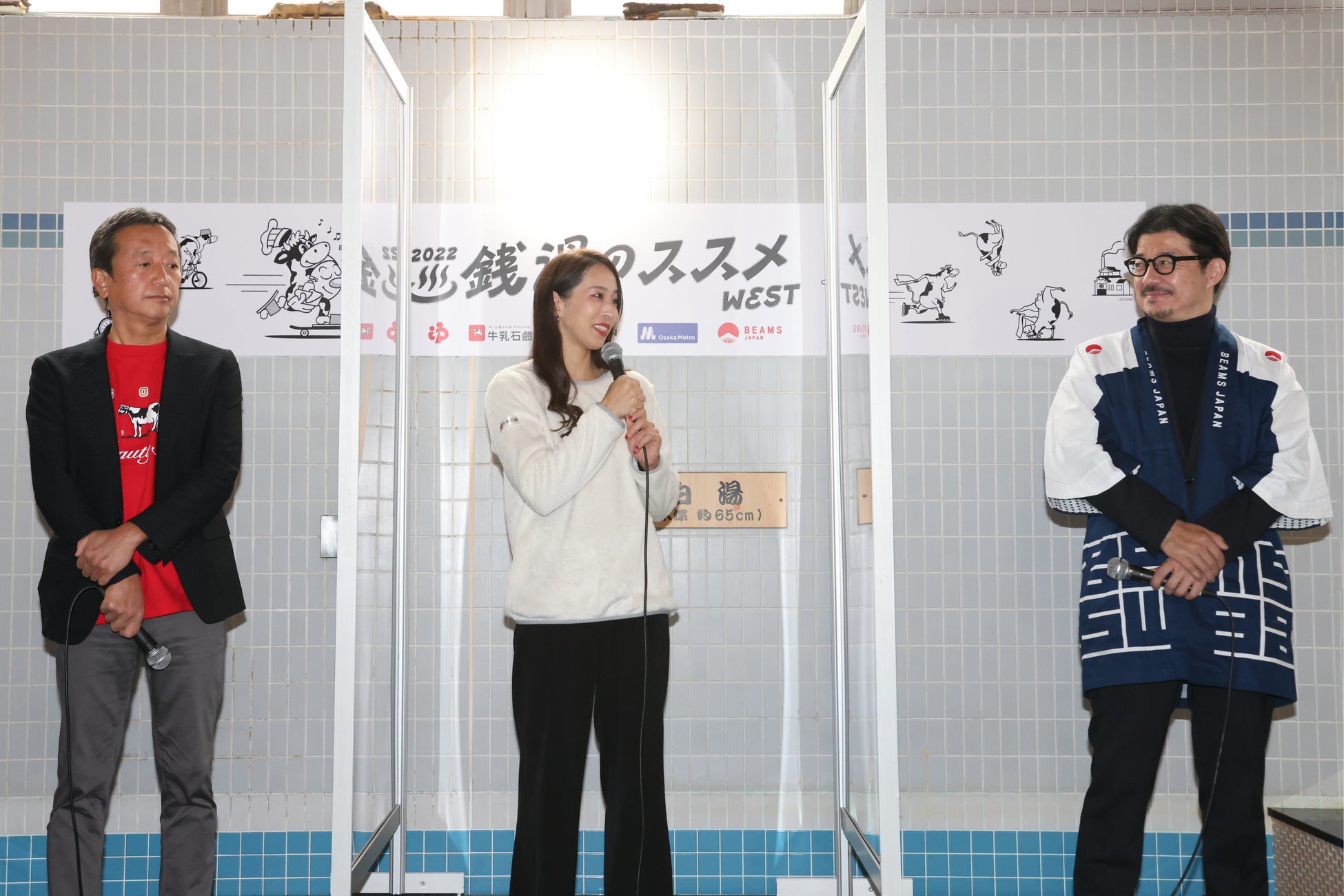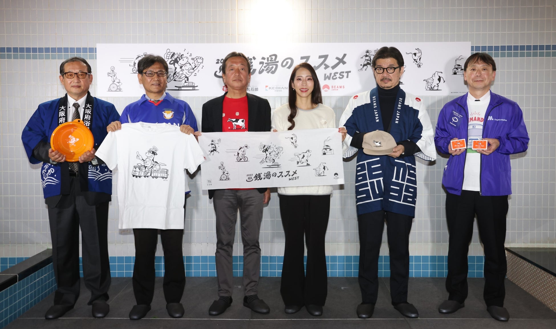 株式会社ビームス(本社:東京都渋谷区、代表取締役社長:設楽洋)が日本の魅力を発信するBEAMS JAPAN(ビームス ジャパン)、牛乳石鹸共進社株式会社(本社:大阪市城東区、代表取締役社長:宮崎悌二)、大阪市高速電気軌道株式会社(Osaka Metro、本社:大阪府大阪市、代表取締役社長:河井英明)、京阪電気鉄道株式会社(本社:大阪府大阪市、代表取締役社長:平川良浩)、大阪府公衆浴場業生活衛生同業組合(所在地:大阪府大阪市、理事長:宮前博一)の5団体は、街の銭湯の素晴らしさを伝えるコラボレーションプロジェクト「銭湯のススメ。」の第三弾企画として「銭湯のススメWEST」を2022年11月17日(木)よりスタートします。 本プロジェクトの幕開けとなる同日に、大阪市阿倍野区の銭湯「湯処あべの橋」にて「銭湯のススメWEST 記者発表会」を開催しました。