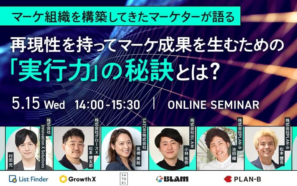 【5/15(水)オンライン開催】マーケ組織を構築してきたマーケターが語る再現性を持ってマーケ成果を生むための「実行力」の秘訣とは?
