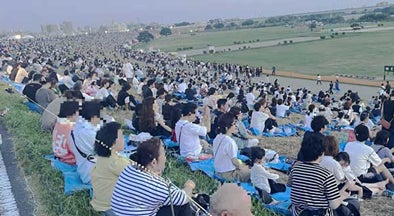 有料席:①河川敷の斜面に座って花火を見る「シート席」
