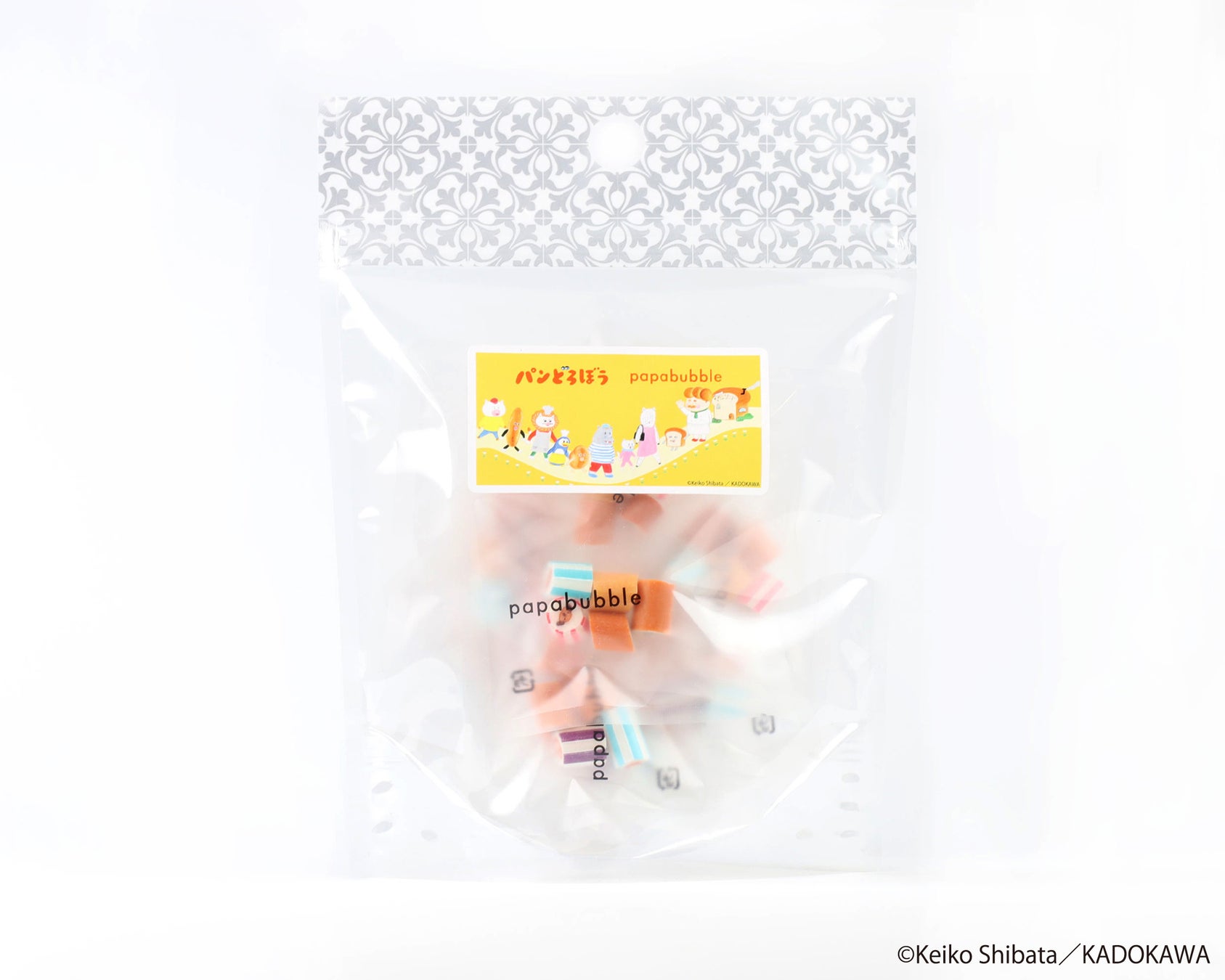 「パンどろぼう」「にせパンどろぼう」そして彼が愛してやまない“パン”の絵柄を詰め込んだ、物語の始まりを予感させるセットです。パパブブレの職人が一粒ずつ丁寧に作り上げた表情は、見つめるだけでにっこりしてしまう愛らしさ。