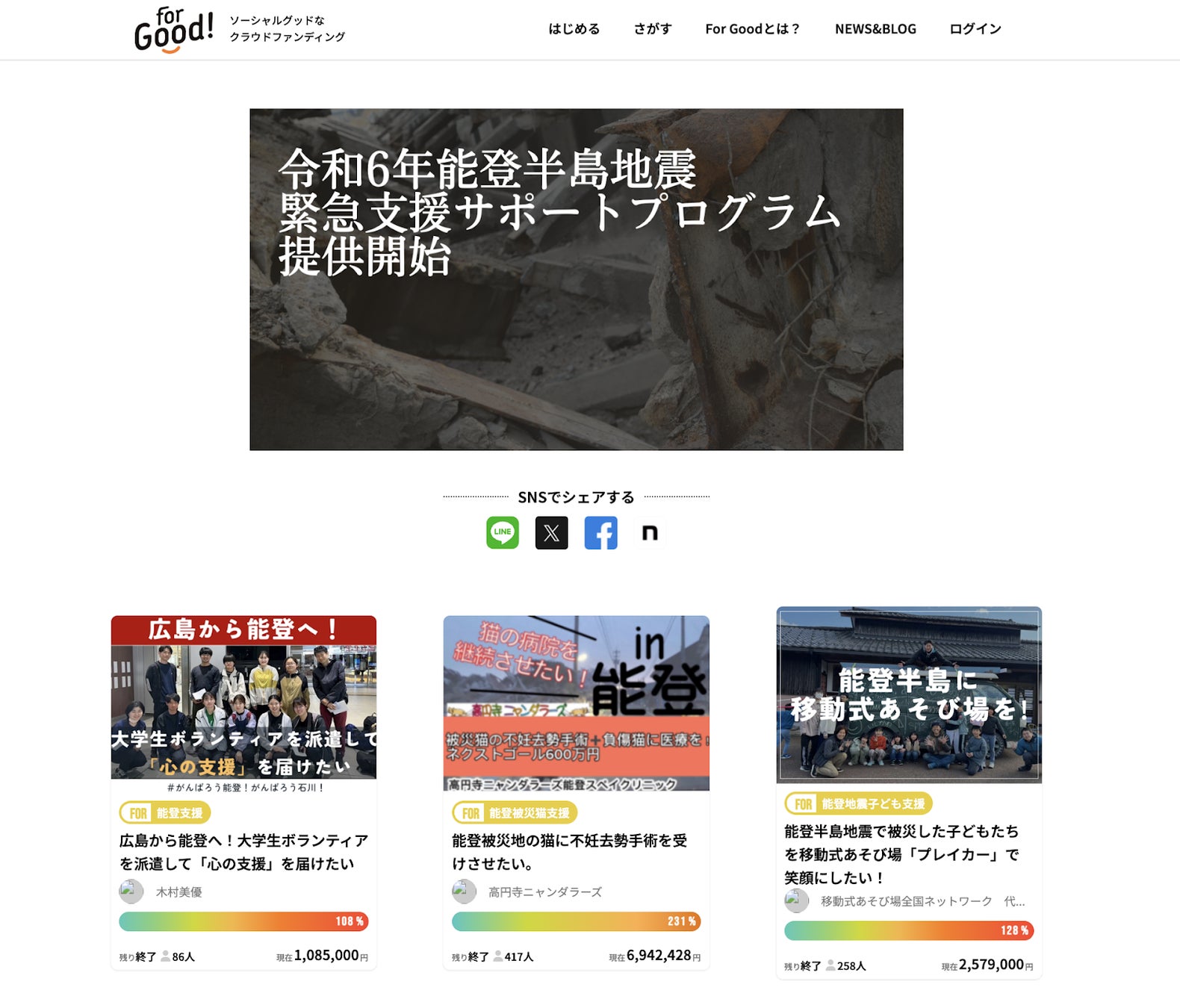 能登半島地震緊急支援サポートプログラム特設ページ:https://for-good.net/features/noto_earthquake_2024