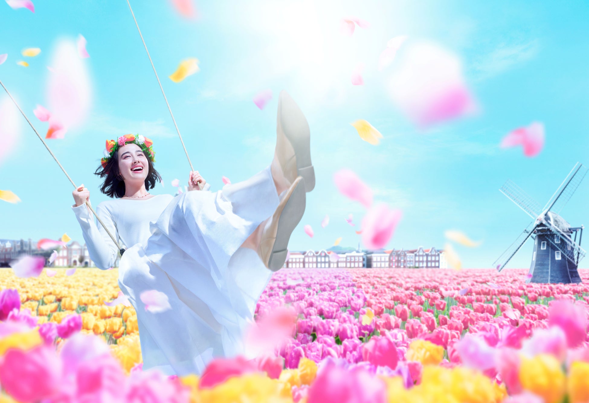 100万本のチューリップと風車や街並みによる本場オランダに訪れたかのような絶景