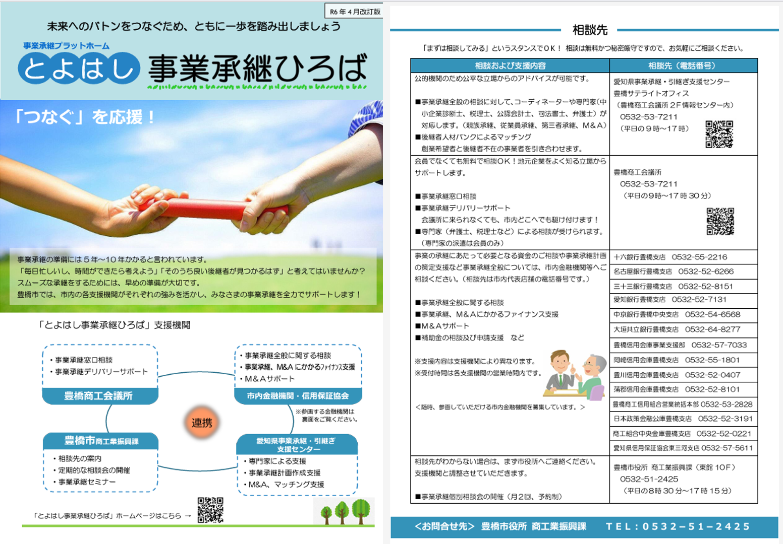 事業承継に特化したリーフレット「廃業させないまち とよはし」について