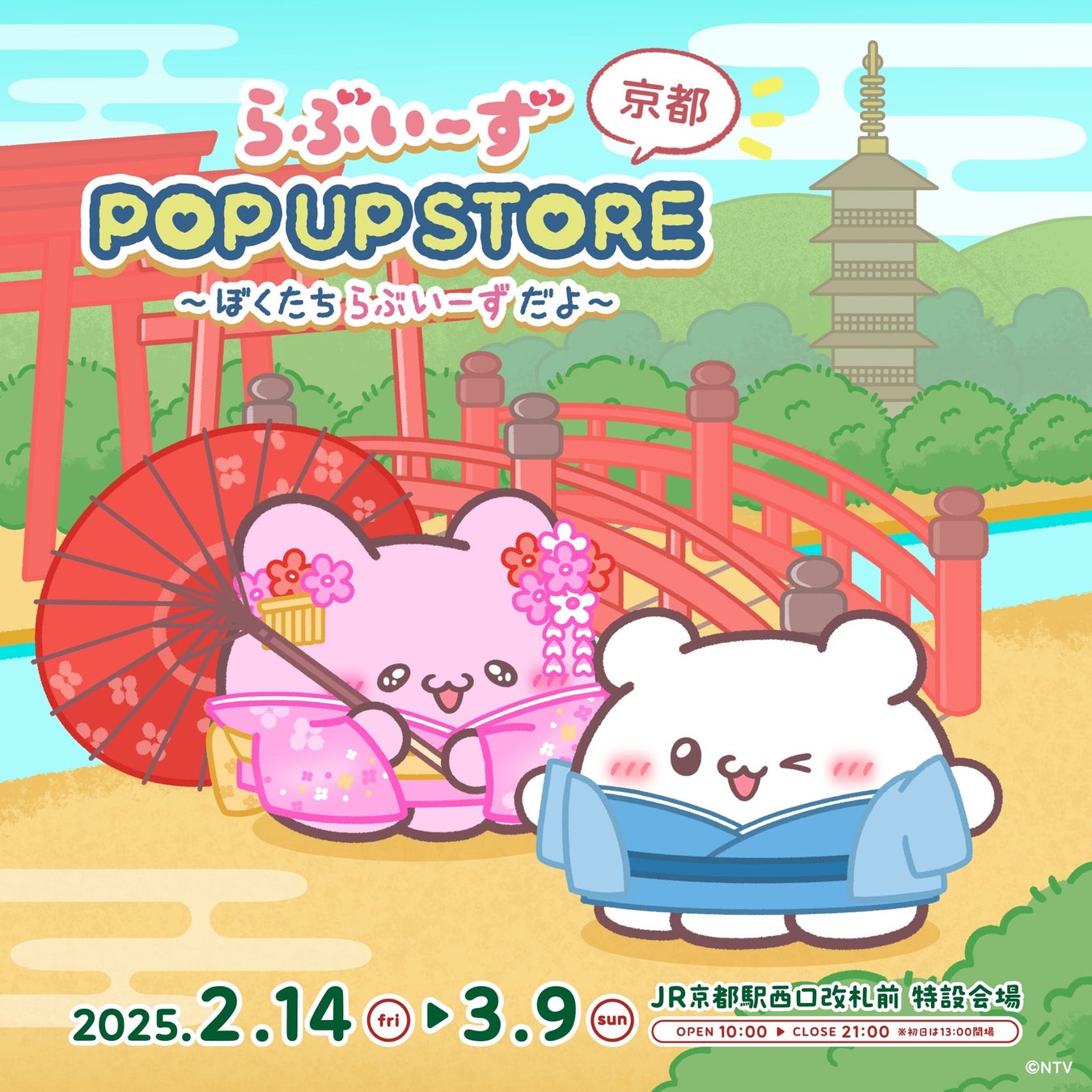 オリジナル商品の企画・制作・販売を軸に、企業・組織のトータルブランディングを手掛ける株式会社ヘソプロダクション(本社:大阪市福島区・代表取締役:稲本ミノル)は、2025年2月14日(金) から 3月9日(日)までの間、JR 京都駅 西口改札前 特設会場にて、期間限定ショップ「らぶいーず POP UP STORE~ぼくたちらぶいーずだよ~」を開催いたします。