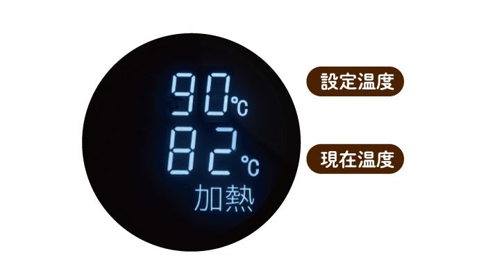 設定温度と現在の温度を同時に表示され確認が可能です。