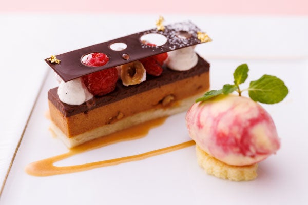 【デザート】プラリネショコラムース バニラとフランボワーズアイスクリーム