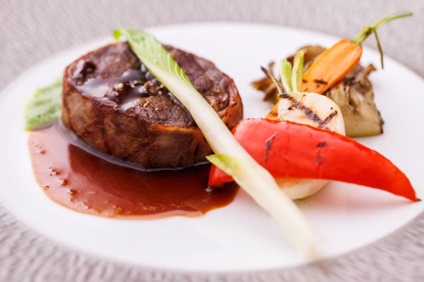 ≪お肉≫牛フィレ肉ベーコン巻のグリエ 菜の花のクーリとマディラ酒ソース