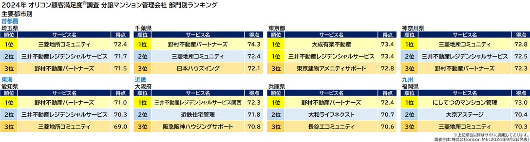 【野村不動産パートナーズ】が『近畿』と『東海』で2冠【大京アステージ】が『九州』で初の総合1位に 《新発表》主要都市別【野村不動産パートナーズ】が8都市中3都市で1位に