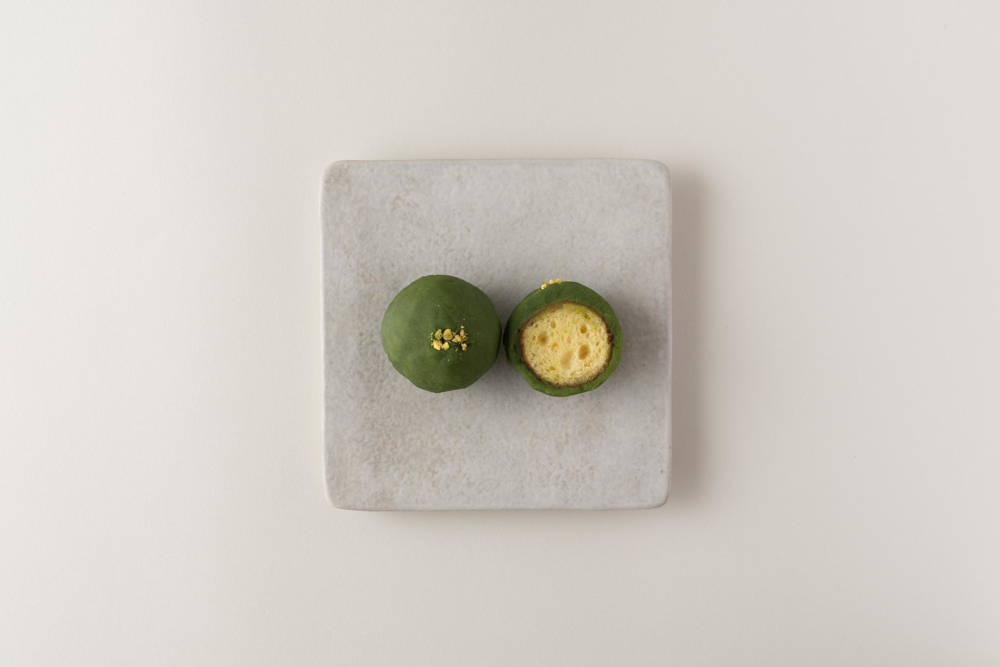 京都の日本茶専門店”YUGEN”が厳選した、香りの良い抹茶粉を練り込んだ宇治抹茶餡。ピスタチオのアクセント。