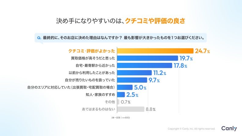 さらに、いざ「お店で売ろう」と決めた後も、どこのお店で売ろうか複数のお店を比較して決めているのです。