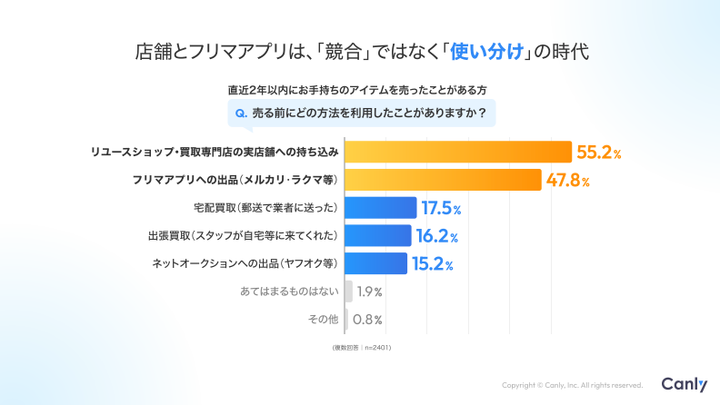 最新調査の結果、店舗とフリマアプリは目的にあわせて使い分けられていることがわかりました。