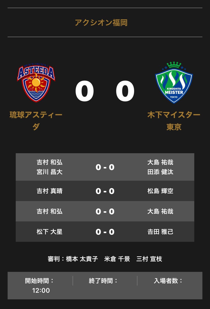 10月8日(土)12:00 試合開始 琉球アスティーダ vs 木下マイスター東京 対戦オーダー発表