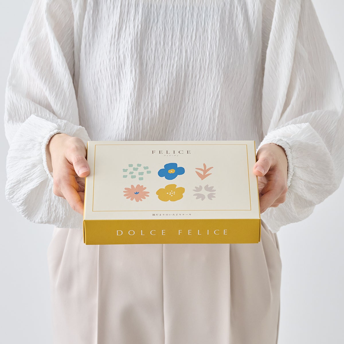 DOLCE FELICE(ドルチェフェリーチェ)は、KEYUCA1号店の本牧店に併設されたKEYUCA CAFEで、お客様が発した「KEYUCAで引き菓子を購入したい」という何気ない一言から始まったスイーツブランドです。DOLCE FELICEは、イタリア語で「しあわせなお菓⼦」の意味で、“一人でも多くのお客様に笑顔と幸せをお届けしたい”という想いを込め、商品を展開しています。