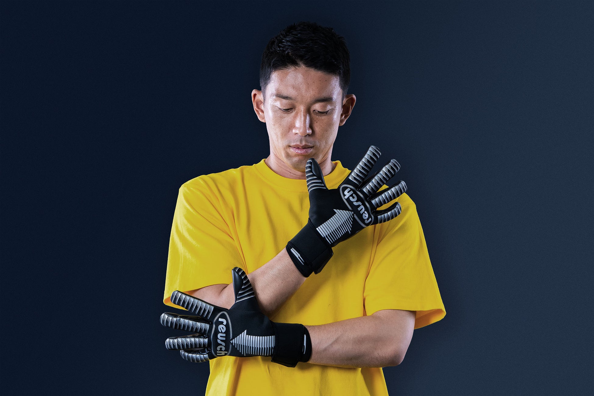 ロイシュグローブは、2023年シーズンより着用。「キャッチングって100%技術でするものだと思っているのですが、それを支えてくれるのがGKグローブ。手を守り、手首の安定感を保ってくれるグローブをつけることで、技術を発揮することができる。試合前日にはあえてグリップ力の低いアイテムを使って、自分の技術を再確認しています」と複数のモデルを使い分けています。