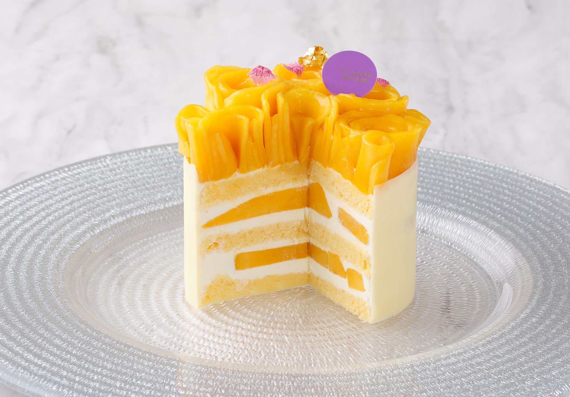鮮やかなビタミンカラーが目を引くプレミアムマンゴーショートケーキは、しっとりとした甘さ控えめのスポンジ、上品な甘さの生クリーム、濃厚なマンゴーが絶妙なハーモニーを奏でます。濃厚な甘さと芳醇な香りが特徴の完熟マンゴーを丸ごと1個使い、パティシエが繊細な技でマンゴーを一枚ずつバラの花びらに見立て、マンゴーローズが敷き詰められた花束を表現した、マンゴー好きにはたまらないマンゴー尽くしの逸品です。