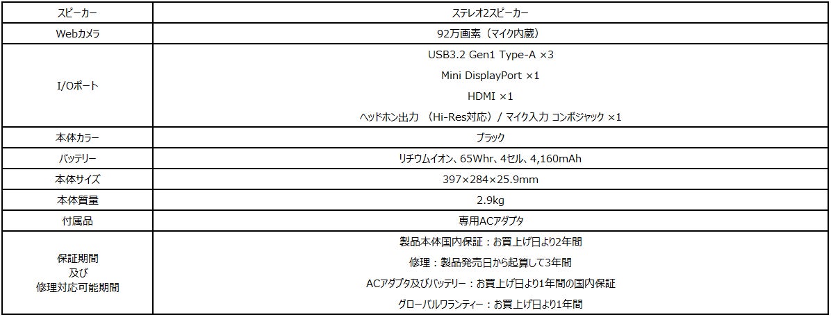 また、メモリ16GB(8GB ×2)、高速タイプSSD 1TB、大迫力の17.3インチディスプレイを備え、これからPCゲームを始めたいというビギナーゲーマーでも内部構成や仕様で迷う心配なく安心してお求めいただける構成となっています。