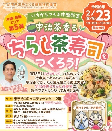 【地域健康栄養支援センター】宇治市未来をつくる食育推進事業いちからつくる体験教室「宇治茶香るちらし茶寿司をつくろう!」