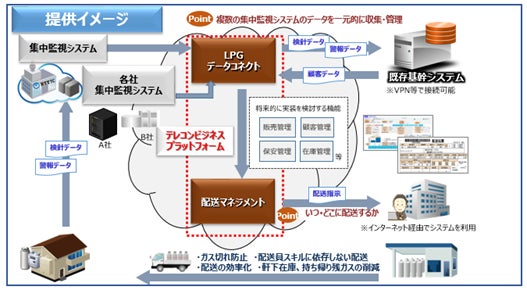 複数の集中監視システムから得られる検針などデータを一元的に収集・管理し、ガス事業者さま基幹システムとの各種データ連携を可能にする「LPGデータコネクト」、毎日検針データを有効活用し合理的な配送タイミングを指示する「配送マネジメント」の2つのサービスの提供を開始します。