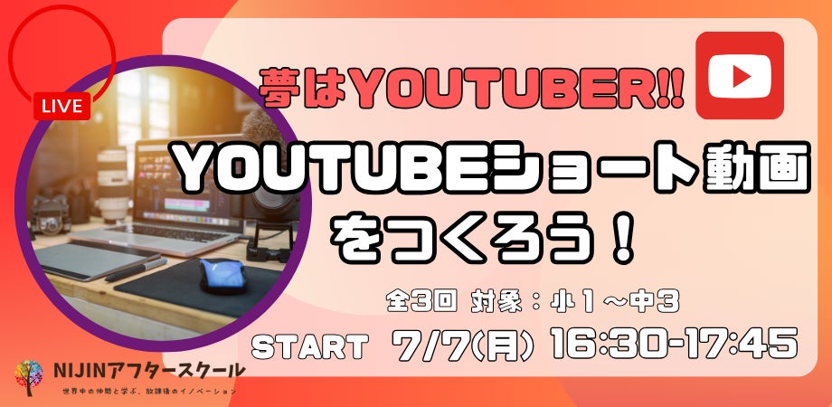 株式会社NIJIN(本社:東京都江東区、代表取締役:星野達郎)が運営する小中学生を対象とした探究プロジェクト型アフタースクール『NIJINアフタースクール』では、小中学生を対象にYouTube動画制作のプロジェクト体験を開催することをお知らせいたします。