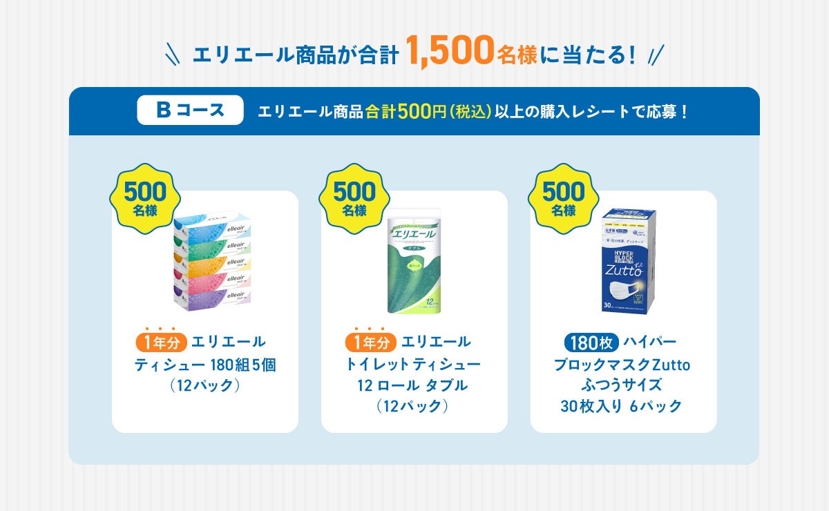 ◎Bコース(抽選:各500名さま):500円以上の購入レシートで応募可