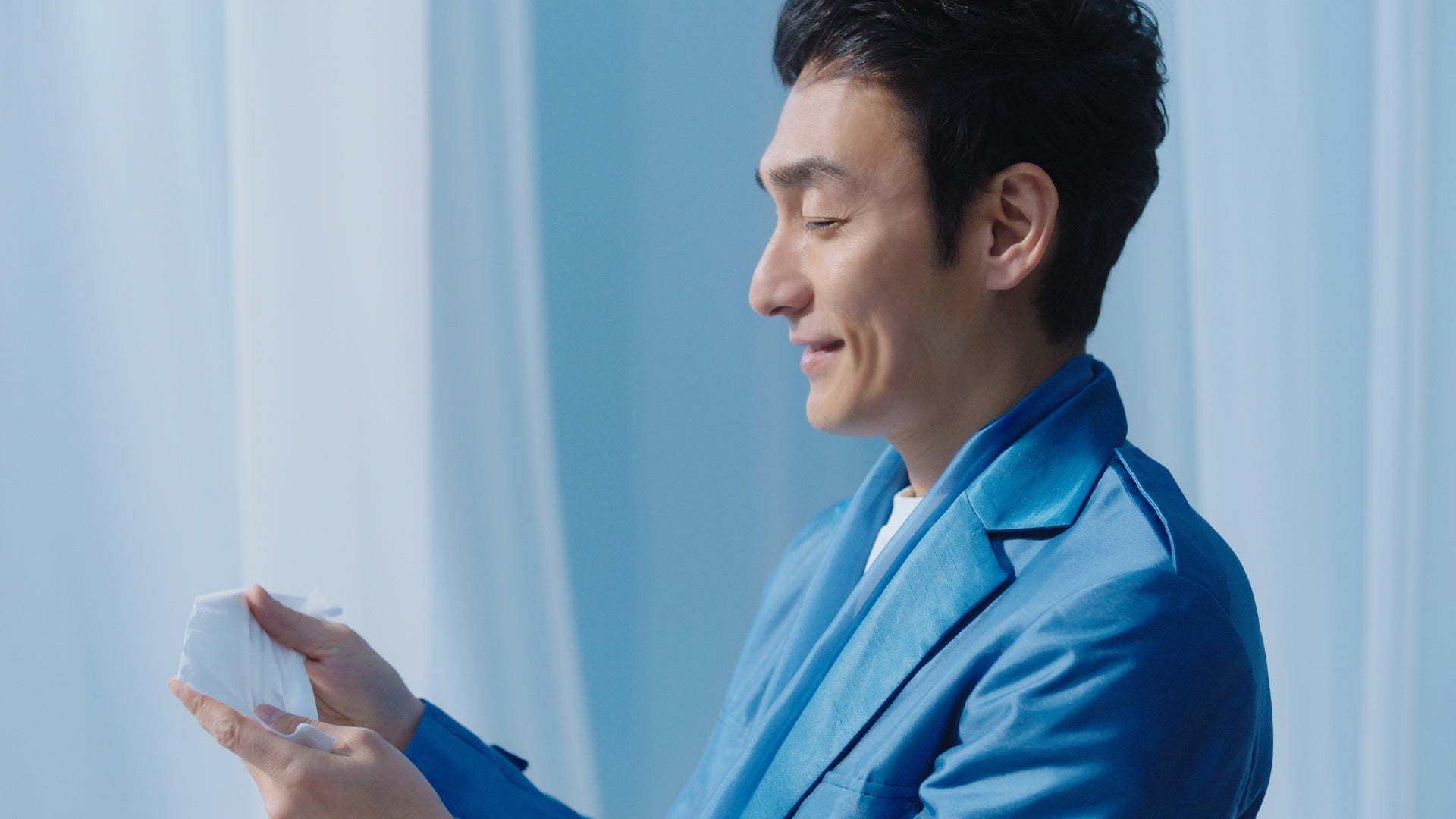 すごく素敵な空間で撮影しまして、僕も普段よりちょっと爽やかに、ちょっと大人っぽくというか、穏やかになれたのかなと思っています。やさしさあふれる表情にこだわって、この商品の温もりや温かみが伝わればいいなと思い、一生懸命演技しました。ティシューの柔らかさと僕の柔らかさがリンクしてるところに注目してほしいです。