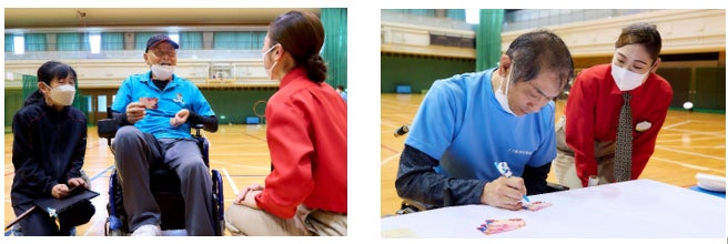 ユニバーサル・スタジオ・ジャパンが位置する大阪市此花区には、パークから区内のこども食堂などの“こどもの居場所”や、障がい者スポーツセンター等の福祉施設へ「サンクス・ラブ・カード」を寄贈いたしました。また5月10日(水)には、障がい者スポーツセンター・アミティ舞洲へパーク・コンシェルジュが訪問し、フライングディスク舞洲倶楽部の皆さまへメッセージカードをお渡ししました。普段、直接気持ちを伝え合う機会がなかったチームメイトの皆さまでカードを交換し合ったり、家族に宛てたメッセージを時間をかけて記入されるなど、皆さま思い思いに「ありがとう」の気持ちをカードに託されていました。