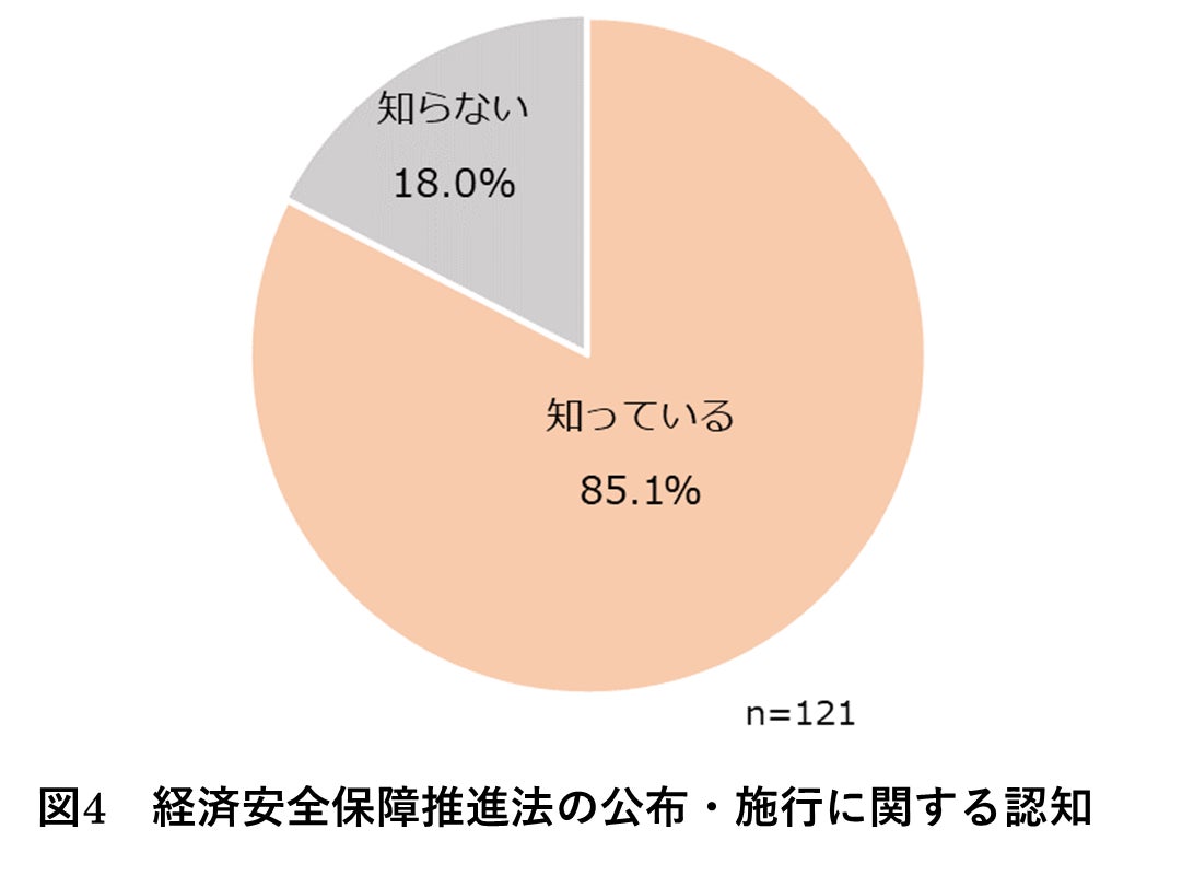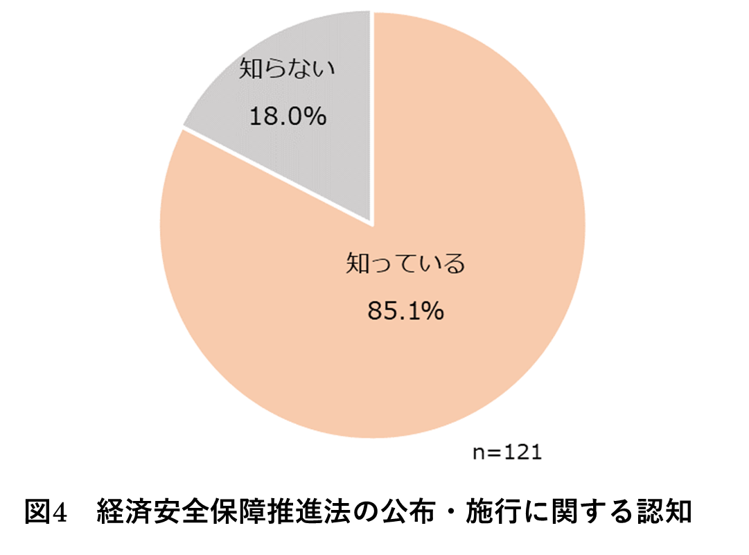 ●経済安全保障推進法の公布・施行は8割を超える回答者が認知していた。