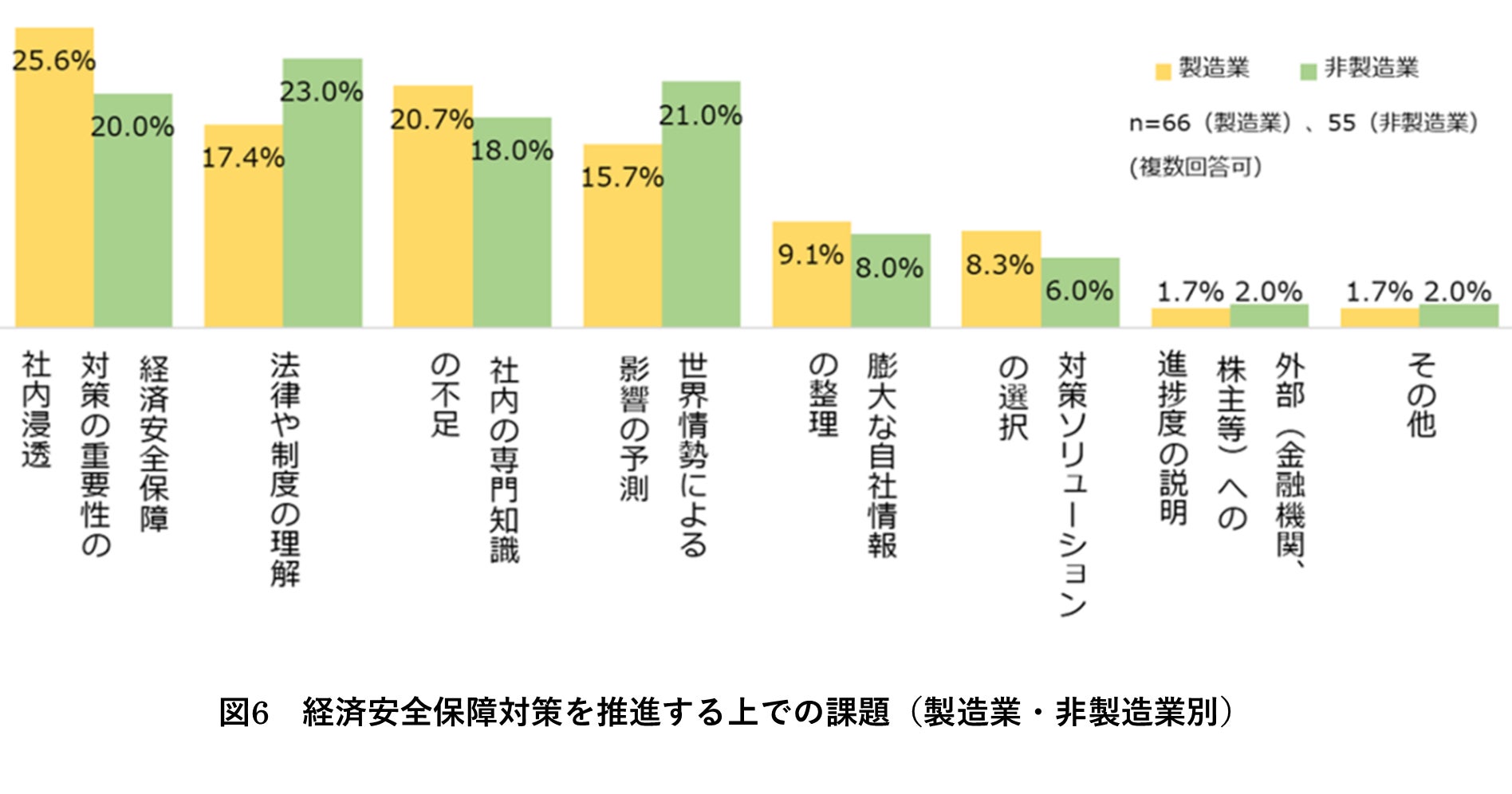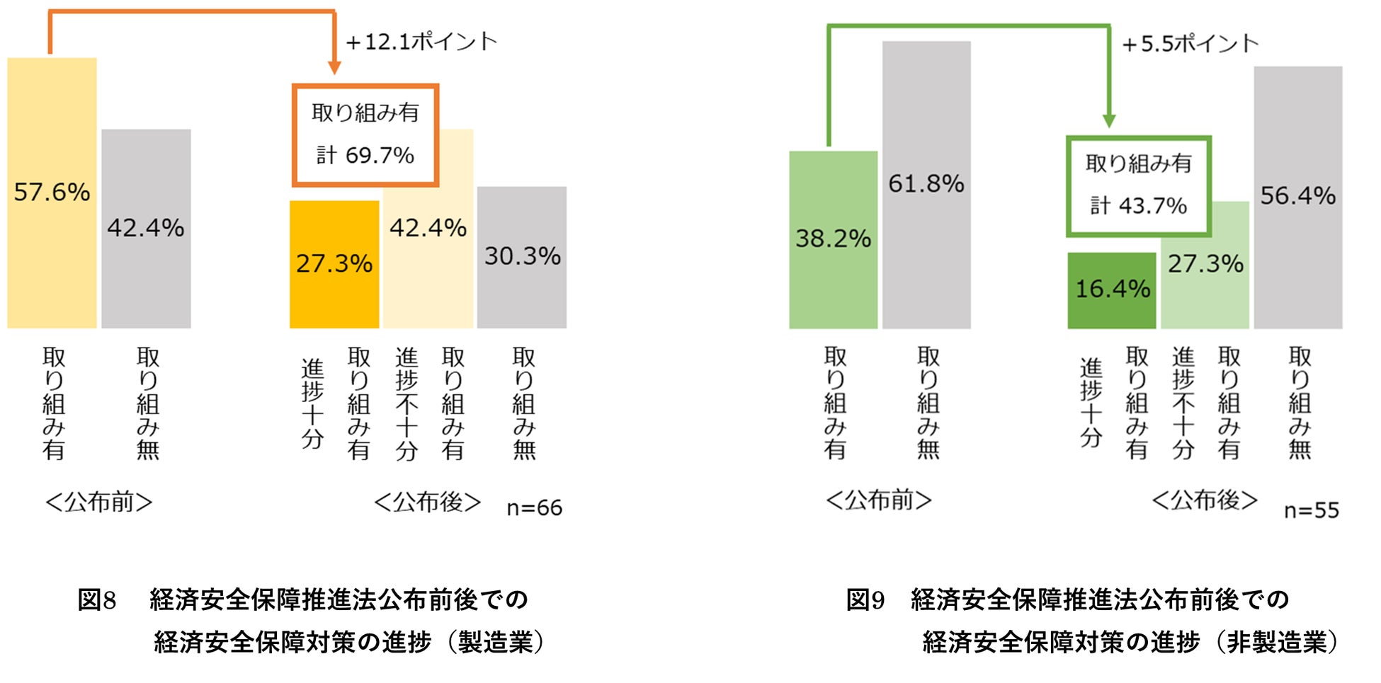 製造業と非製造業に分解した場合も同様の結果となり、多くの企業では経済安全保障対策のスタートラインにあると言えそうです。