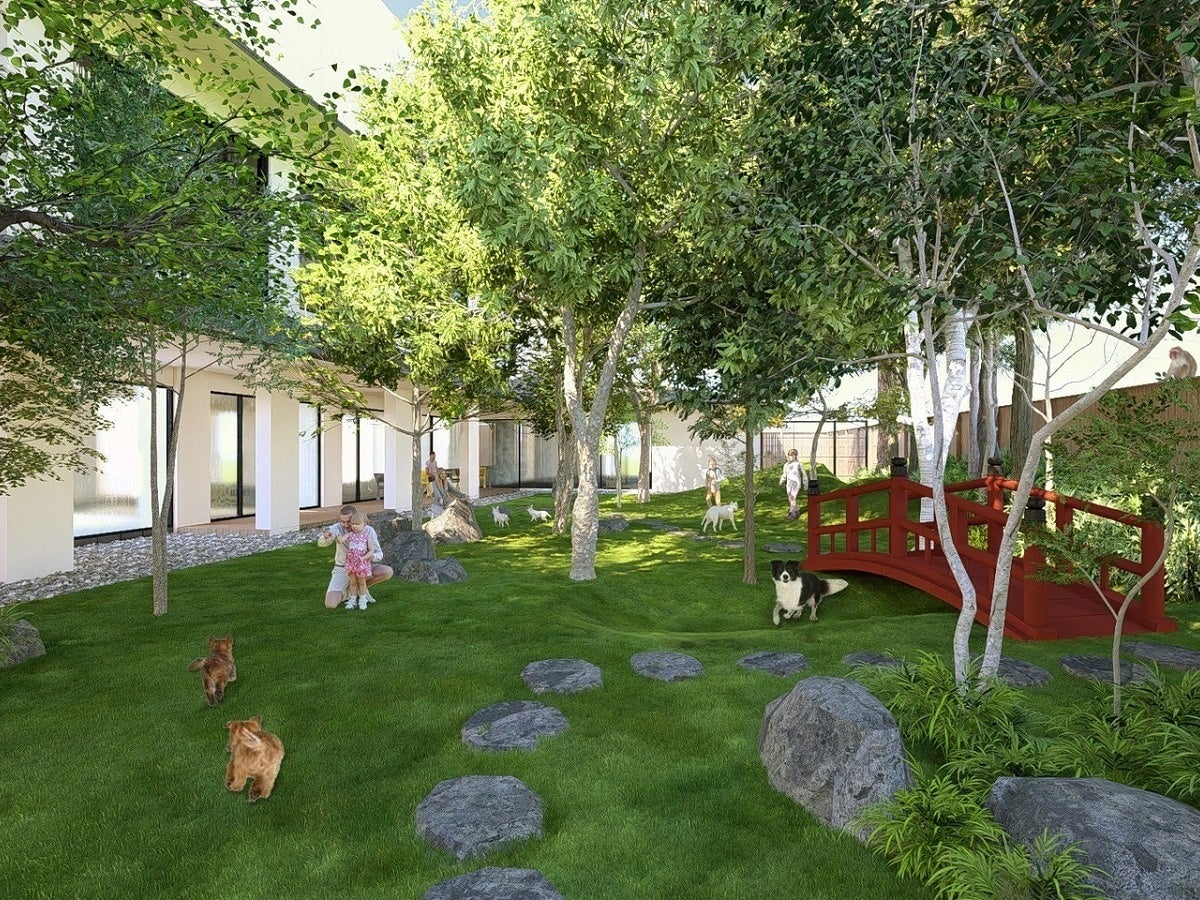 屋内ドッグランや屋外には日本庭園風のドッグランがございます。