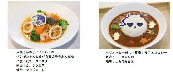 レストラン・軽飲食店舗ではオリジナルコラボフードを販売いたします。「入間くんのサバイバルメニュー ペンギンさんと食べる海の幸をふんだんに使ったスープパスタ」は、収穫祭で入間くんが作った鍋料理をスープパスタにアレンジしたメニュー。さらに、「魔入りました!入間くん」で登場するフードをイメージしたメニューを全10種ご用意しております。商品をご購入のお客さまにはランダムでオリジナルステッカーを1枚プレゼント!
