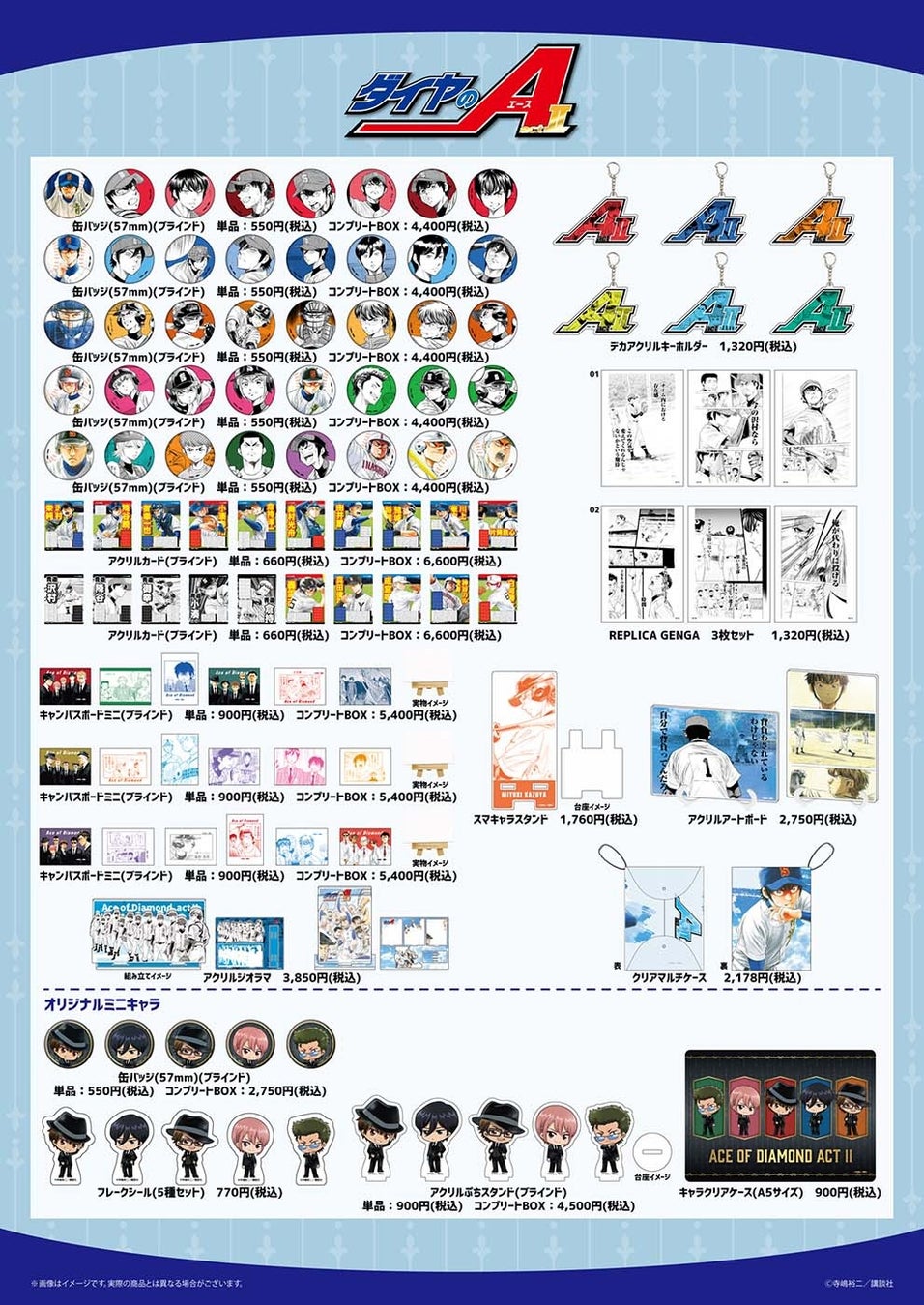 『ダイヤのA actⅡ』原作イラスト&オリジナルミニキャライラストを使用した12種104アイテムの新作グッズが登場!