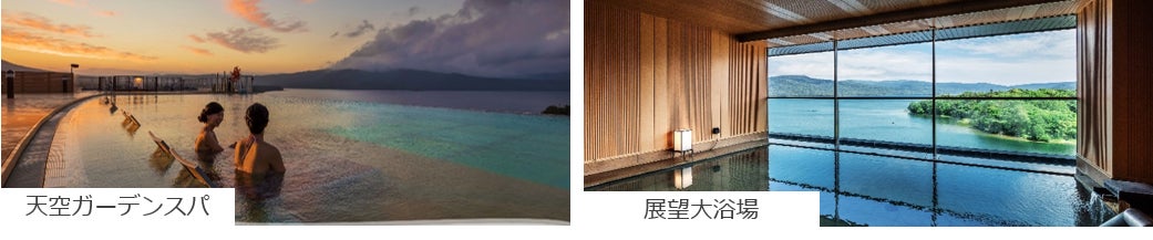 阿寒の湖と空とまるで一体化するような天空ガーデンスパでは、阿寒湖や満点の星空をお楽しみいただけます。また、雄大な阿寒湖の景色を眺めながら湯に浸る地上30mの展望大浴場では、阿寒の大自然を眼下に見下ろしながら、ゆったりと非日常の癒しのひとときをご堪能ください。