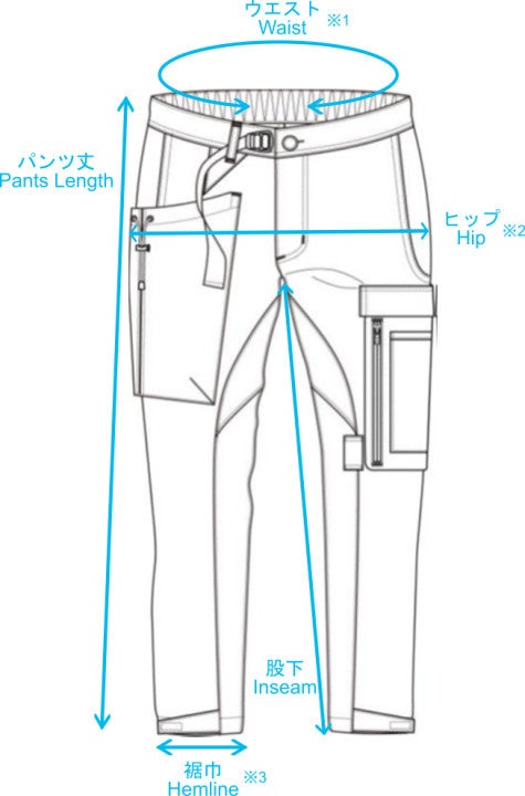 ベルト先のDカン、ZIP付ヒップポケット、調整可能な裾など、快適便利な機能を搭載しています。