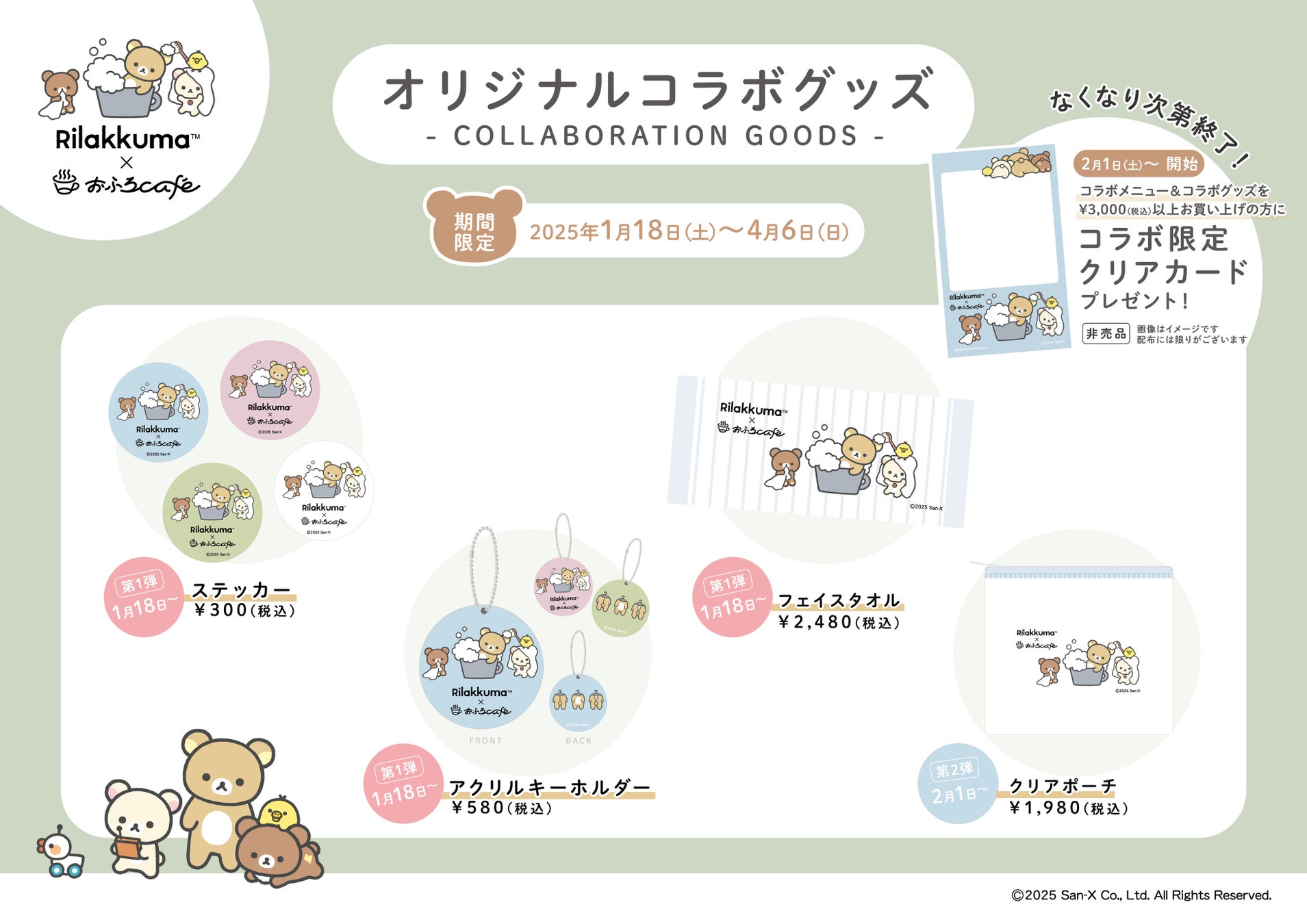 その他、のんびり過ごすリラックマたちのかわいい姿を表現したコラボメニューや、バスタイムを楽しむリラックマたちのデザインをほどこしたコラボグッズがおふろcafé店舗限定で販売するなど、ここでしか楽しめない限定コンテンツが目白押しです。