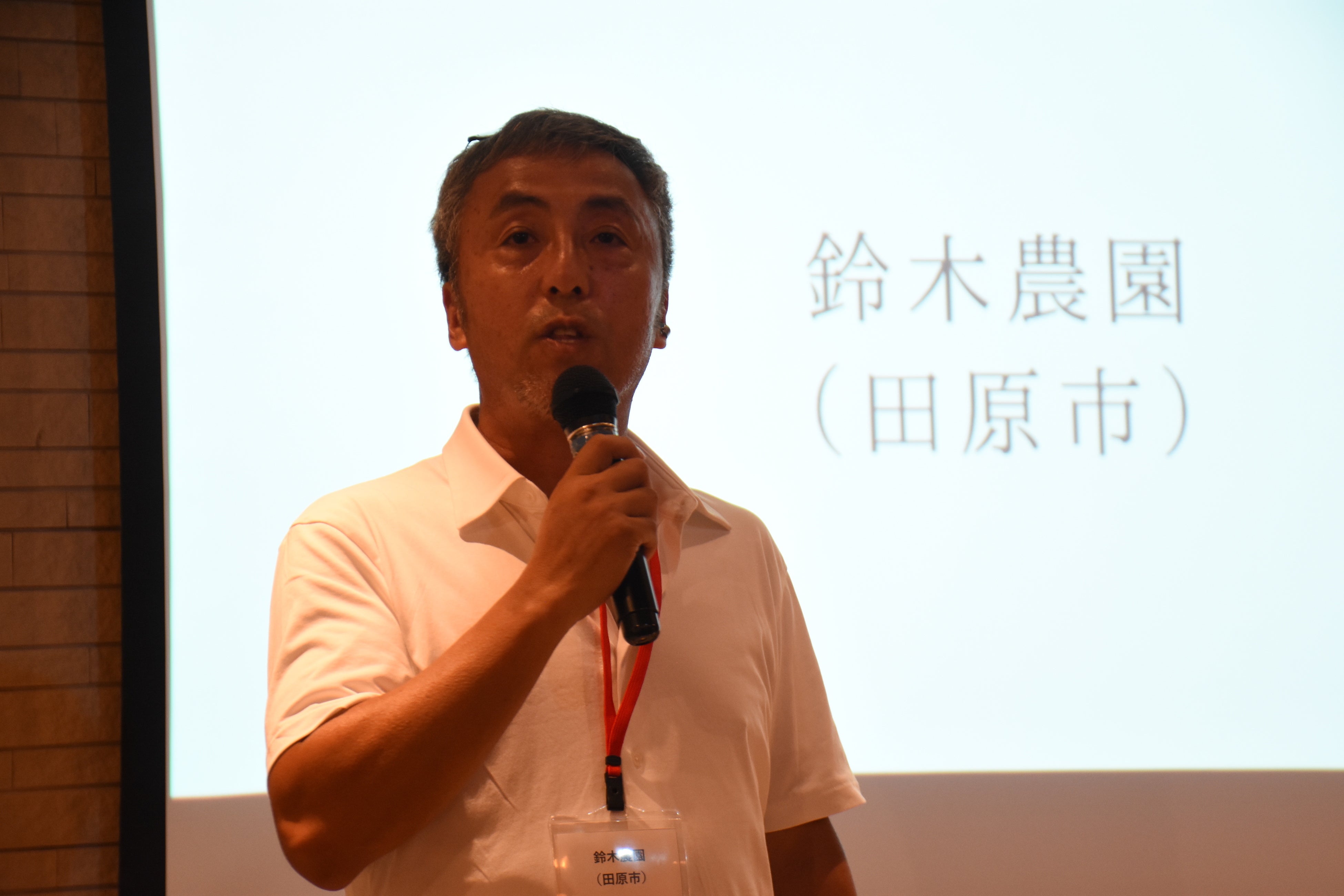 特産品の次郎柿を作る農家も2軒が参加。「しげはら農園」は「次郎柿をもっともっとPRしていきたいが、収穫時期の秋はものすごく忙しいので、柿農家だけでは難しい。一緒に次郎柿をPRしてくれる仲間を募りたい」と呼びかけました。「百年柿園ベル・ファーム」は、市内で次郎柿の栽培が始まり今年で110年になる一方で、いまだ柿の産地としての知名度が低い現状を説明。「収穫期間が短く、加工品も多くないので、皆さんの目に触れる機会が少ない」と原因を分析しており、同園が取り組む柿を長期的に提供する工夫や加工品の開発について紹介しました。