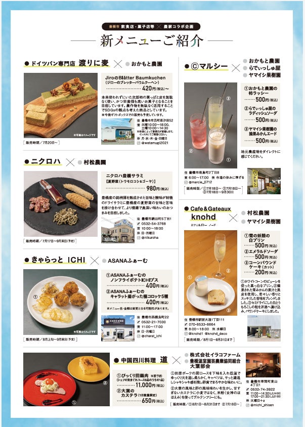 3年目となる今年はマッチング会の回数を年2回に増やしました。夏の生産物は5月に行われ、トウモロコシや大葉、ジャガイモなどを育てる11の生産者と、日本料理や中華料理、カフェなど12店舗が参加しました。その後、6つのグループが新メニューの開発まで進み、次郎柿の葉を使ったバウムクーヘンやトウモロコシのプリンなどがこの夏、各店舗で提供されています。