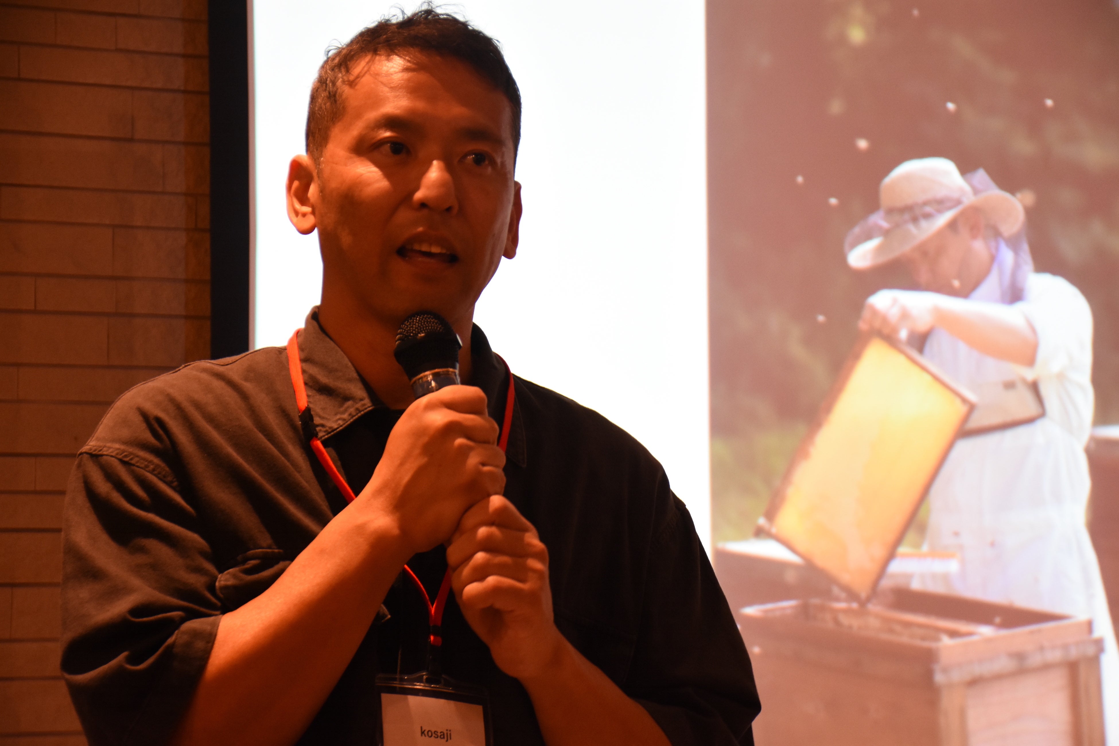 初参加の生産者もいます。「苺屋田中」は赤色が濃く、甘みと香りが強いイチゴの品種「やよいひめ」を化学農薬、化学肥料を使わずに栽培しており、「雑味のないすっきりとした味わい」と表現しました。また、豊橋市でミツバチを飼育している養蜂家の近藤勝俊さんは、試食用にハチミツを配り、濃厚な甘みと香りが特徴の「春」、スパイシーで酸味のある「夏」と、それぞれの味の違いを説明。「味の違いで季節の幅を感じてほしい」と話していました。