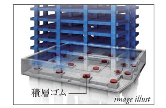 建物と基礎の間に免震装置を組みこむことで災害時の地震エネルギーを吸収し、地盤の揺れを建物に伝わりにくくする「免震構造」を採用しています。